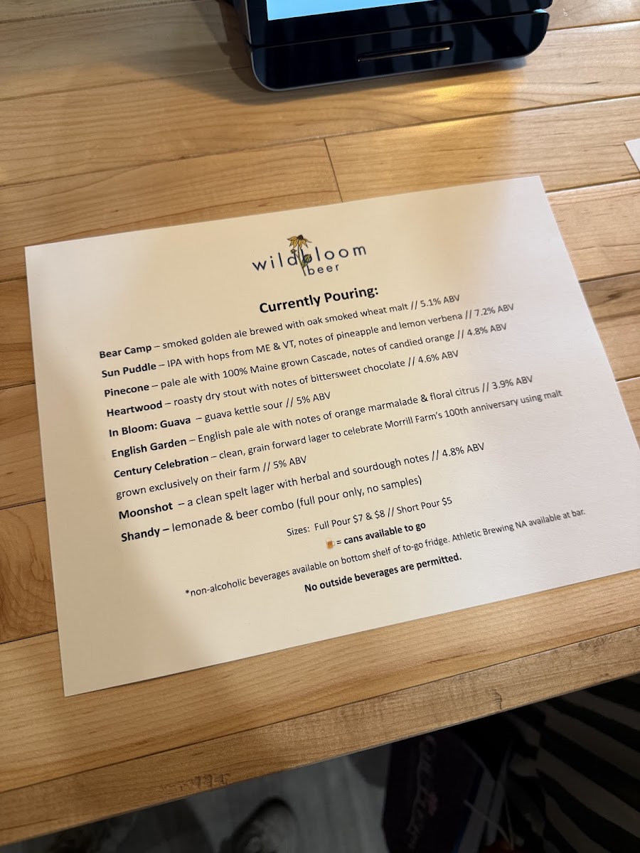 Wildbloom Beer offers a straightforward and focused menu centered on thoughtfully crafted beers, making it an ideal spot for those seeking a relaxed and unpretentious tasting experience. The selection features a variety of brews that highlight locally sourced ingredients and seasonal touches, such as their saisons and hazy NEIPAs.